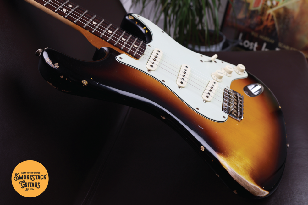 A Lightweight Alder Body with its Off-Center Seam sets the tone for the outré funkiness that this Strat bestows the player. Finished in Two-Tone Sunburst with a nitro lacquer, the relic work on display here is extremely tasteful - lots of lacquer checking and wear (check out the colour bleeding through on the forearm contour!).