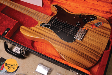 Crafted from an exotic and rare zebrawood, the body and fingerboard give this Strat the most striking aesthetic. This elegant look has been balanced expertly with the 3-ply BWB scratchplate and black headstock face - perfection!