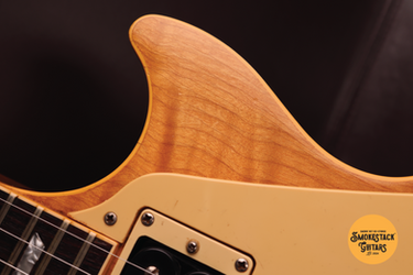 Produced in Nashville (MFG date June 12th 1983), this Standard Natural features some highly desirable features that make it uncommon. The first thing that you will notice is it features a distinctive two-piece flame maple top, typically this model was produced with a three-piece plain maple top. It also has a one-piece mahogany back and a one-piece mahogany neck (usually constructed from laminated maple).