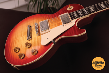| Keystone Vintage Deluxe Tuners | ABR-1 Bridge | Mahogany Body & Neck (Vint. '50s Profile) | Figured Maple Top | Gloss Nitro | Burstbucker 1 & 2 | Graph Tech Nut | Bound Rosewood Fretboard | Amber Top Hat Knobs w/Pointers | Hand-wired w/Orange Drop Capacitors |