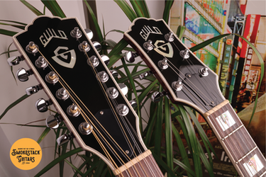 | Solid Mahogany 6-String Neck | "C" Profile 6-String Neck | Mahog'/Maple/Mahog' 12-String Neck | "D" Profile 12-String Neck | Rosewood Fretboards Bound w/V-Block Inlays & Unbound w/Dots | 12" Radius & 24.75" Scale Length (Both Necks) | Mahogany Body w/Optional AAA Maple Top & Cream Binding | Nitrocellulose Finish | Grover Rotomatic Tuners | Seymour Duncan Alnico II APH1B & APH1NL Pickups | Rosewood Bridge Equipped w/Fishman Transducer | Fishman AGP2 Rev2 Preamp w/Vol Slider Control and Hidden Treble/Bass Control | Gotoh Tune-O-Matic Bridge | Westerly-era G-Shield Knobs (Translucent) | Original Hardshell Case |
