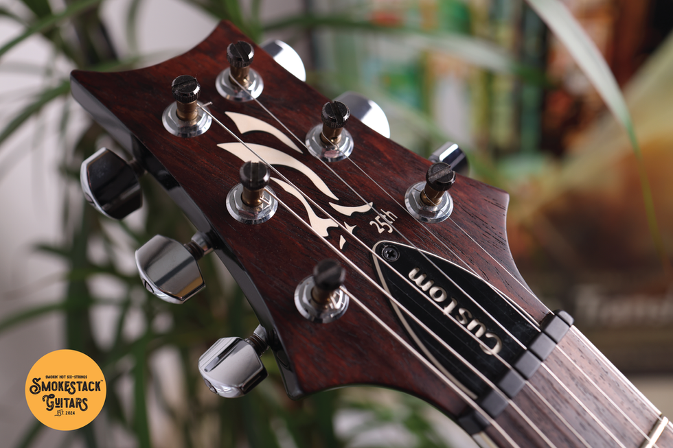 To celebrate its 25th Anniversary, PRS is offering the Custom 24 with shadow bird inlays, anniversary headstock eagle, bound rosewood fretboard, 57/08 pickups and a gorgeous 10-top.