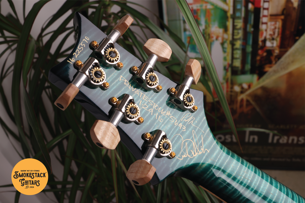 As you'd expect, the specification on this guitar is amazing, with the tonewood selection being second to none. The curly maple top is a joy to behold, with its rich, consistent figuring; you know this is a Private Stock from first glance. The Bahama Blue Smoked Burst finish does a superb job of accentuating this figuring, creating a really dramatic look, on both the top and on the back of the curly maple (Pattern Regular) neck. It should be stressed that the neck's figuring is completely mesmerising to witness; its "holographic" look is a showstopper!