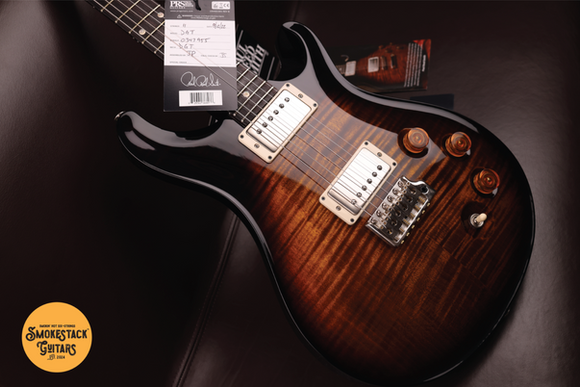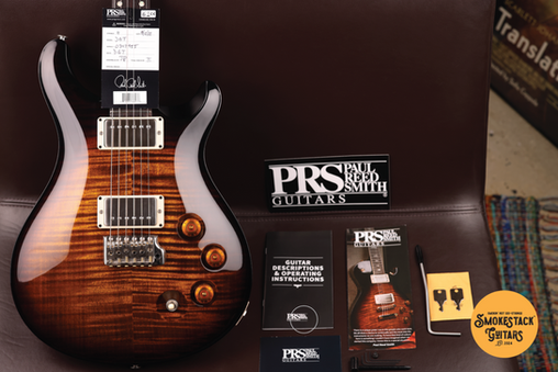 This guitar boasts a beautiful maple top with prominent and intense contrasting striping - it's a stunning addition married up to the mahogany back. We think this particular finish is a first-rate choice for this model, it matches perfectly with the amber Speed Knobs that PRS have reintroduced!