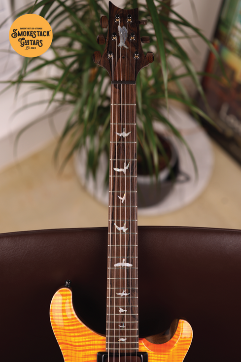 As you'd expect, the specification on this guitar is outstanding with the timber selection being second to none. Finished in a vivid Citrus Glow, the dramatic yellow tones meld into a lustrous orange hue, perfectly highlighting the densely figured Private Stock Curly Maple top.