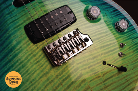Please note, where it states the Gen III Trem finish is Smoked Black - the Private Stock team have actually chosen a hybdrid approach here with the saddles and knife-edge screws being Smoked Black and the bridge being Chrome to better blend against the Laguna Dragon's Breath body. This is evidenced from the original photos of the guitar when it was available for sale at GuitarGuitar (original listing still available on their website).