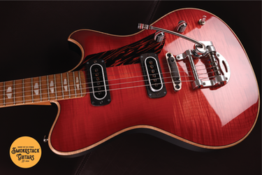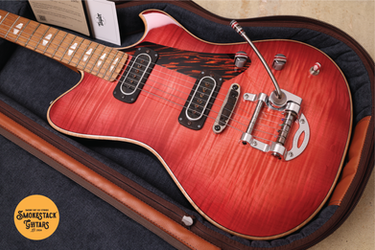 Powers Electric A-Type Select Flame in Cosmo Red with Asymmetrical Split Radius Honduras Rosewood Fretboard, Solid Flame Maple Top (Polished), Urban Ash Body (Satin), One-Piece Mahogany Neck (Velvet Finish), PF42 Pickups, CamTail Bridge System & Ebony Saddle