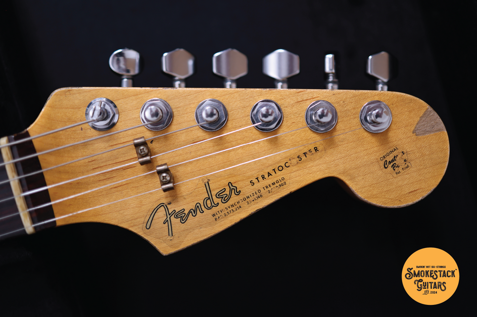 Just some of the standout features of this guitar are the custom-wound '60 Strat pickups (producing that fine '60s smooth single coil articulation), a period correct nitrocellulose finish (or what's left of it) and a beautiful AAA rosewood fretboard.