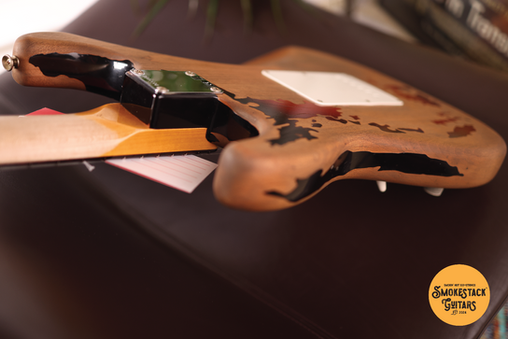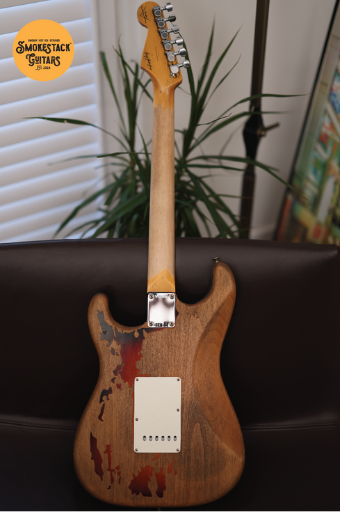This spectacular reproduction of Rory's iconic '61 Stratocaster is a sight to behold, however, it is much more than just an aesthetic relic. This guitar is a true reproduction of Rory's legendary instrument, it is extremely resonant and exudes Rory's signature raw, striking sound.